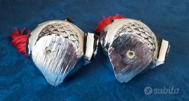 Viene presenta questa simpatica coppia di Gufetti in resina argentata in ottime condizioni. Ottimo per arredare o per un idea regalo per un amico superstizioso o per un regalo pre o post laurea. Entrambi i Gufetti hanno sotto le ali un grosso libro ed indossano il classico copricapo di un laureando, arricchito da un codino in filo rosso scaramantico e portafortuna.