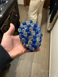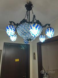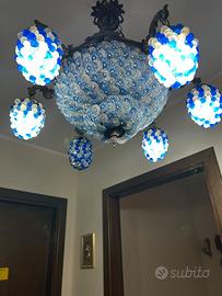 Coppia di lampadari in vetro di murano con perle di vetro bianche e blu anni 60/70 Trattative in privato