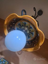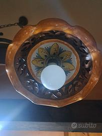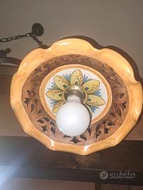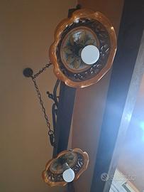 Vendo causa cambio arredamento: Coppia di lampadari a sospensione, modello in stile rustico realizzato in ferro battuto con decorazioni in ceramica. No perditempo.