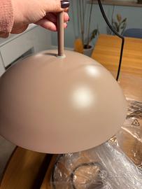 Coppia di lampadari color tortora H&M Lampada da soffitto con paralume in metallo e lampada opaca. Cavo rivestito in tessuto di lunghezza regolabile. Alloggiamenti in metallo, attacco per lampadine E27. Altezza totale 37 cm, diametro 36,5 cm. Lunghezza del cavo 130 cm. Peso 2,75