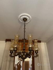 Coppia di lampadari vintage in bronzo uno a 6 e l'altro a 8 bracci con 2 vetri di ricambio. Disponibile per spedizione (da verificare su richiesta le quotazioni sono pesanti e delicati)