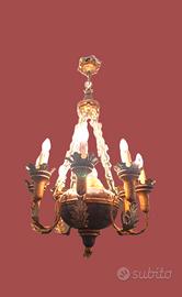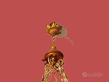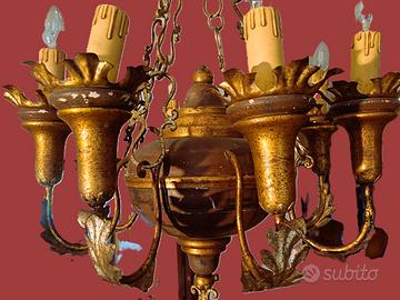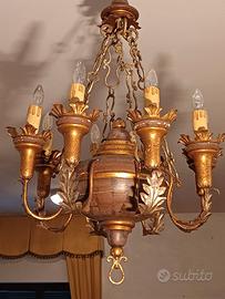 coppia di importanti lampadari a sei braccia in legno e ottone. misure : diametro 60 cm , altezza dal soffitto 120 cm