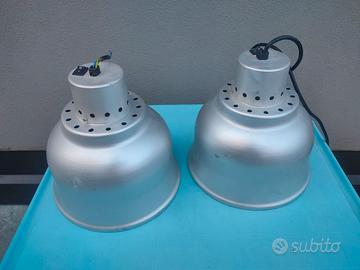 coppia di lampade a sospensione catershef materiale alluminio diametro cm 23 presenti alcuni segni legati all'usura e al tempo