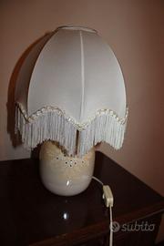 Lampade abat jour da comodino stile retrò, in ceramica con decorazioni e tessuto con frange. Ritiro in loco