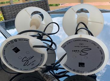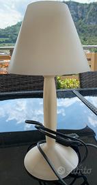 Coppia di lanpade da tavolo o da comodino Miss Sissi della Flos design Ph. Starck del 1991. Realizzate in policarbonato color avorio, lampadine fornite da 60 W, cavo nero e spina italiana. Misure: H. 29 cm, diametro base 12 cm, diametro paralume 15 cm. In buone condizioni e perfettamente funzionanti. Solo ritiro.