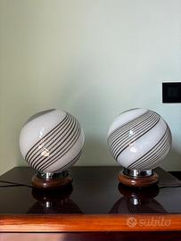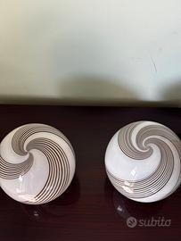Vendo coppia di lampade decorative dal design elegante e originale, con paralume sferico in vetro bianco opalino e motivo a spirale color tortora/marrone. Ideali per arredare soggiorno, camera da letto, ingresso o studio, aggiungono un tocco raffinato e contemporaneo all’ambiente. Le lampade sono in ottime condizioni estetiche e perfette per chi cerca un complemento d’arredo particolare, minimal ma d’effetto. Possono essere vendute insieme o separatamente.