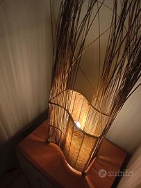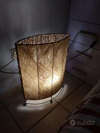 vendo coppia di bellissime lampade etniche, realizzate in cartapecora e legno, con telaio e piedini in ferro battuto nero. creano un' atmosfera davvero particolare