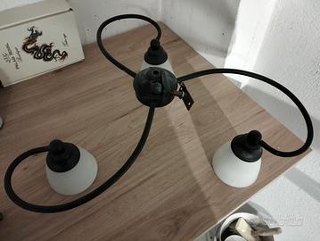 coppia di lampade fatte a mano in ferro battuto con attacco a muro soffitto e specchio per bagno con vetri oggetto fatto a mano