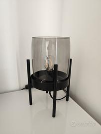 coppia di lampade con base in ferro nero e plafoniera in vetro fumé ( essendo pittato fumé pulendole si sono creati piccoli graffi dove è saltato il colore, con il diluente al nitro si può portare il vetro direttamente al suo colore trasparente!)