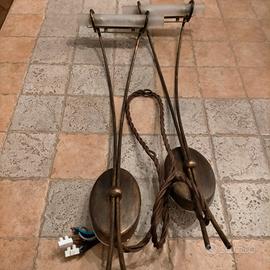 coppia di lampade in stile vintage colore bronzo anticato con cavo corrente in tessuto. Montano lampadine r7s 78mm. Si possono installare anche lampadine a led.