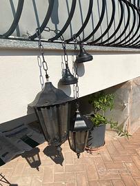 Coppia di lanterne a muro uso interno e esterno con catena. Materiale ferro e vetro.