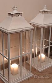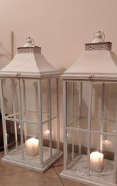 Coppia di Lanterne Materiale : Legno -Vetro -Ferro Colore : Bianco Misure :Altezza 98 cm Largo. 45 cm Prof. 30 cm cedo la coppi