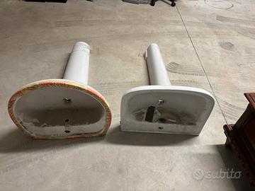 Due lavandini con le rispettive colonne nuovi mai installati uno quadrato con misure 57x50 Tondo 60x57 altezza 72