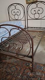 Coppia di letti con contorno in ferro lavorato più materassi ogni letto misura 195 cm per 90 cm