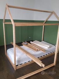 Letti Montessori a casetta in legno – 2 singoli Vendo bellissimi letti Montessori a forma di casetta in legno naturale. Due letti singoli affiancati, larghezza 90 cm ciascuno, ideali per fratelli o per creare una cameretta accogliente e originale.