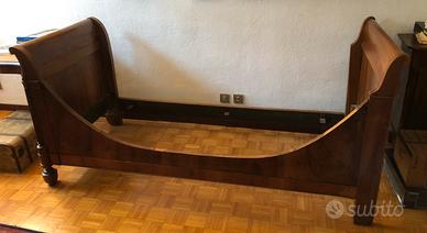 Coppia di letti singoli a barca, in noce, XIX secolo, assemblabili, facili da trasportare, in ottime condizioni.