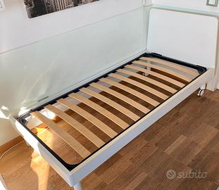 Vendo 2 letti singoli marca ManCasa, misura standard, colore bianco effetto legno, completi di materasso e in ottime condizioni.
