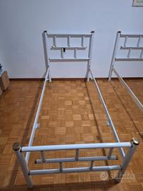 coppia di letti singoli in ferro e ottone senza reti, smaltati bianco