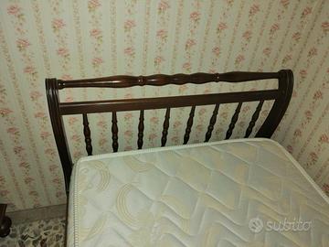Pediera e testiera hanno la stessa altezza e hanno motivi torniti entro telaio.