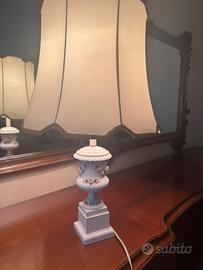 Vendo coppia di lumi da tavolo in ceramica smaltata color avorio, finemente decorati con motivi floreali in rilievo (roselline rosa cipria e foglie verdi).