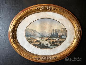 Elegante coppia di stampe antiche a soggetto paesaggistico, presentate in