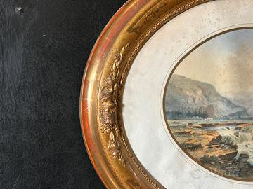 Antica Coppia di Quadri a Medaglione con Cornice Dorata