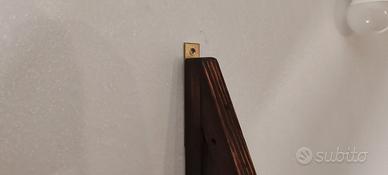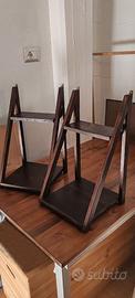 Vendo coppia di mensole dal design unico e originale, realizzate a mano in legno con finitura scura (noce). La struttura a forma di trapezio le rende un pezzo d'arredamento distintivo, ideale per ambienti industrial, rustici o moderni.
