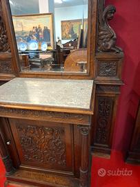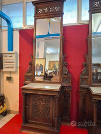 antica coppia di mobili con specchi e marmi originale d'epoca 800"napoletano in legno di noce massello mai restaurati di misura alta 3 metri, da restaurare