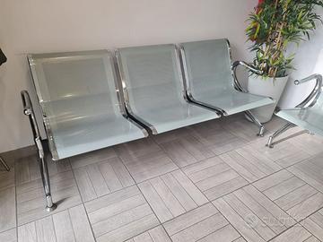 COPPIA di panche per sala d'attesa specifica per ospedali, aeroporti, locali pubblici, uffici, studi, scuola in acciaio. Sedute in acciaio microforato. Dimensioni: 180 X 68 X 78 cm. Spessore lamiera mm 1,5. SPEDIZIONE A CARICO DELL'ACQUIRENTE OPPURE RITIRO IN ZONA TRIONFALE/MONTE MARIO (ROMA).