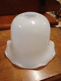 Coppia di paralumi in vetro opaco di colore bianco e bordura beige, in perfetto stato.