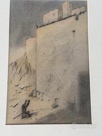 Coppia di opere su carta/cartoncino realizzate a guazzo, con soggetti biblici, firmate con monogramma non identificato.