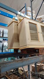 Vendo coppia di pensili a vetrina di alta qualità, realizzati in legno massiccio con una raffinata finitura color crema e profili dorati.