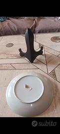 Entrambi i piatti sono completi dei loro supporti in legno scuro, perfetti per l’esposizione su mobili, mensole o vetrine. Sono in ottime condizioni, senza crepe o sbeccature.