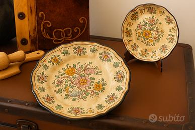 Bellissimi piatti in maiolica smaltata e decorata a mano dalla storica bottega "Cerbella" di Gubbio