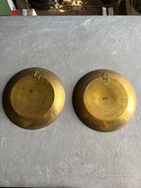 Vendo coppia di piatti decorativi in ottone, realizzati in India, con bellissimi motivi floreali e dettagli smaltati a mano.