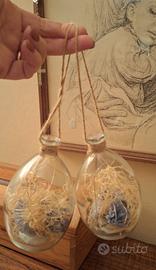 Coppia di piccole lanterne decorative in vetro con piccola catena di luci all interno, funzionanti, si possono appendere.ottimo stato