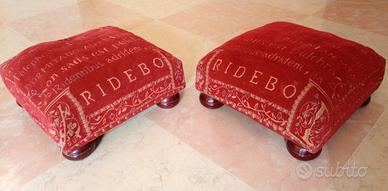 due deliziosi poggiapiedi da salotto in tessuto con motti latini. Realizzati con struttura in legno e tessuto ricamato, sono un bell’oggetto d’arredo, di produzione seconda metà del XX secolo.