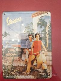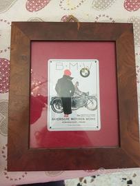 Mis altezza cm 22 larghezza 19 cm con cornice in legno di radica raffiguranti le moto più iconiche d' Italia la Vespa e la Bmw, sono realizzate in placche di metallo smaltate. Stile retro'.