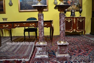Coppia di piedistalli con poutiche in marmo rosso