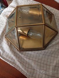 bordi e cassa in Rame vetri satinati di colore giallo sono entrambe di forma ottagonale non presentano imperfezioni di nessun tipo vedi foto, ottimo prodotto per rustici verande,all'interno troverete le otto viti originali più quattro lampadine già cablate.