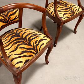 Coppia di poltroncine a pozzetto in faggio tinto noce. Schienale a giorno