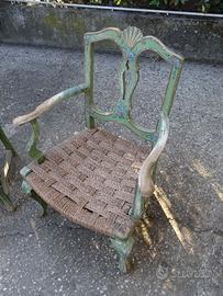 Bellissima coppia di poltroncine primi '900 stile Veneziano con seduta in paglia,da rivedere. Per informazioni o acquisto chiamate al numero (Alessandra)