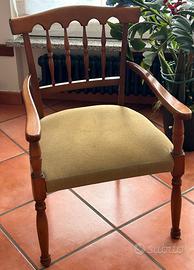 Vendo coppia di poltroncine in legno massello con seduta imbottita verde, dal design classico e senza tempo. Sono comode, solide e ideali per arredare ingresso, salotto, veranda, studio o ambienti eleganti.