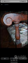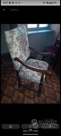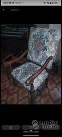 Coppia di poltrone a rocchetto in noce con alto schienale e comodo poggia gomiti. Fodera in tessuto a tema floreale, originali primi '800.