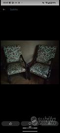 Vendesi coppia di poltrone a rocchetto in noce con alto schienale e comodo poggia gomiti. Fodera in tessuto a tema floreale (fiori rose), originali primi '800.
