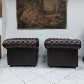 Coppia di poltrone chesterfield club originali inglesi nuove in vera pelle marrone Testa di Moro.