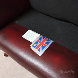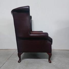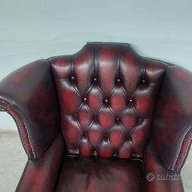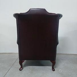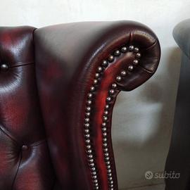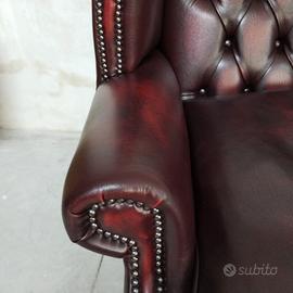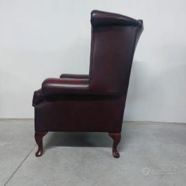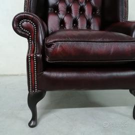 Coppia di poltrone chesterfield Queen Anne originali inglesi nuove in vera pelle rosso bordeaux.