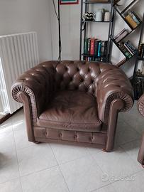 Coppia di poltrone Chesterfield vintage vera pelle