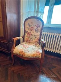 Vendesi coppia di eleganti poltrone antiche gemelle. La vendita in coppia è ideale per chi desidera arredare con simmetria e prestigio un salone o una zona conversazione. Design: Struttura in legno massello con schienale a medaglione e gambe a cabriole. Rivestimento: Tessuto con motivi floreali d'ispirazione classica. Stato: Entrambe le poltrone si presentano in ottime condizioni generali, stabili e con tessuto ben conservato.