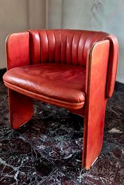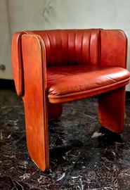 Si tratta del modello “Dinette”, prodotto negli anni ’70, realizzato in una vivida pelle rosso borgogna con dettagli in metallo cromato.